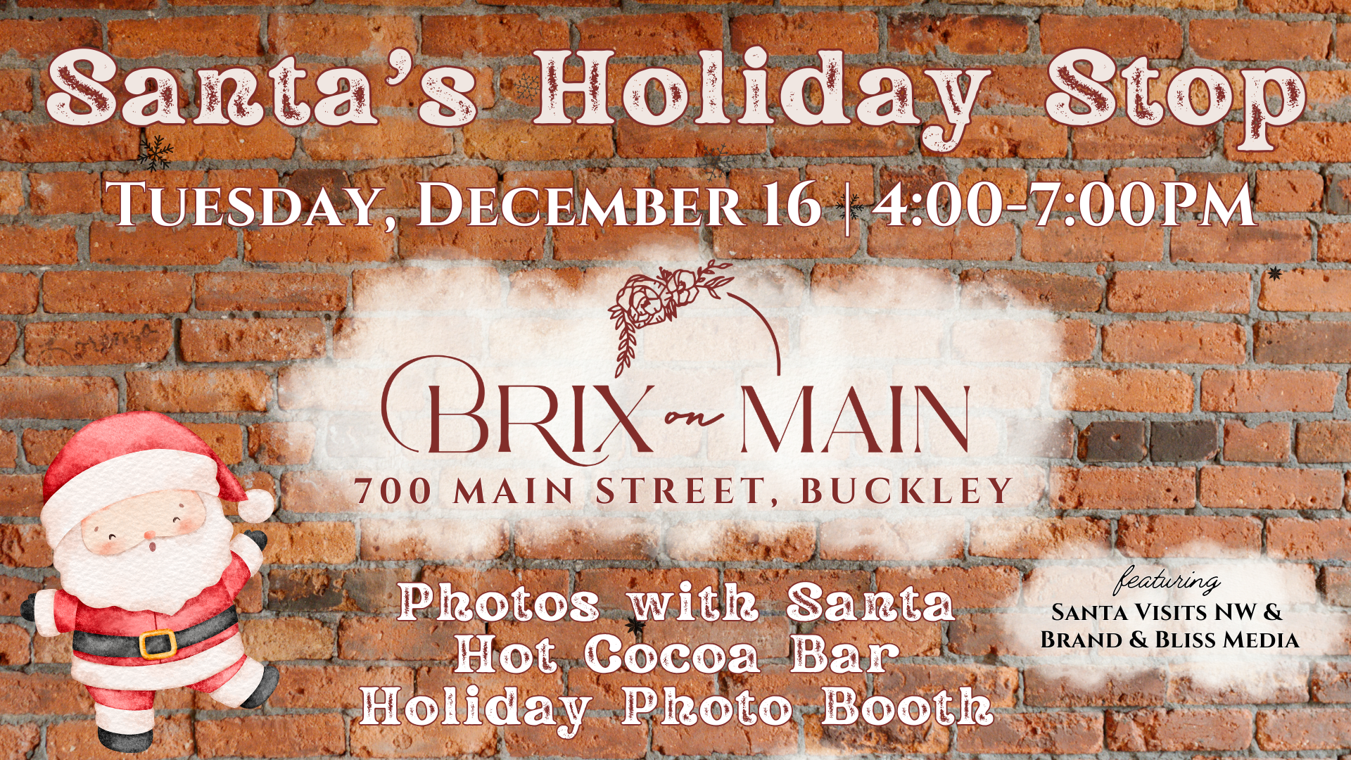 Get ready for a festive celebration the whole family will love! Santa Rich of Santa Visits NW is making a special appearance at Brix on Main on Tuesday, December 16, from 4-7 PM.