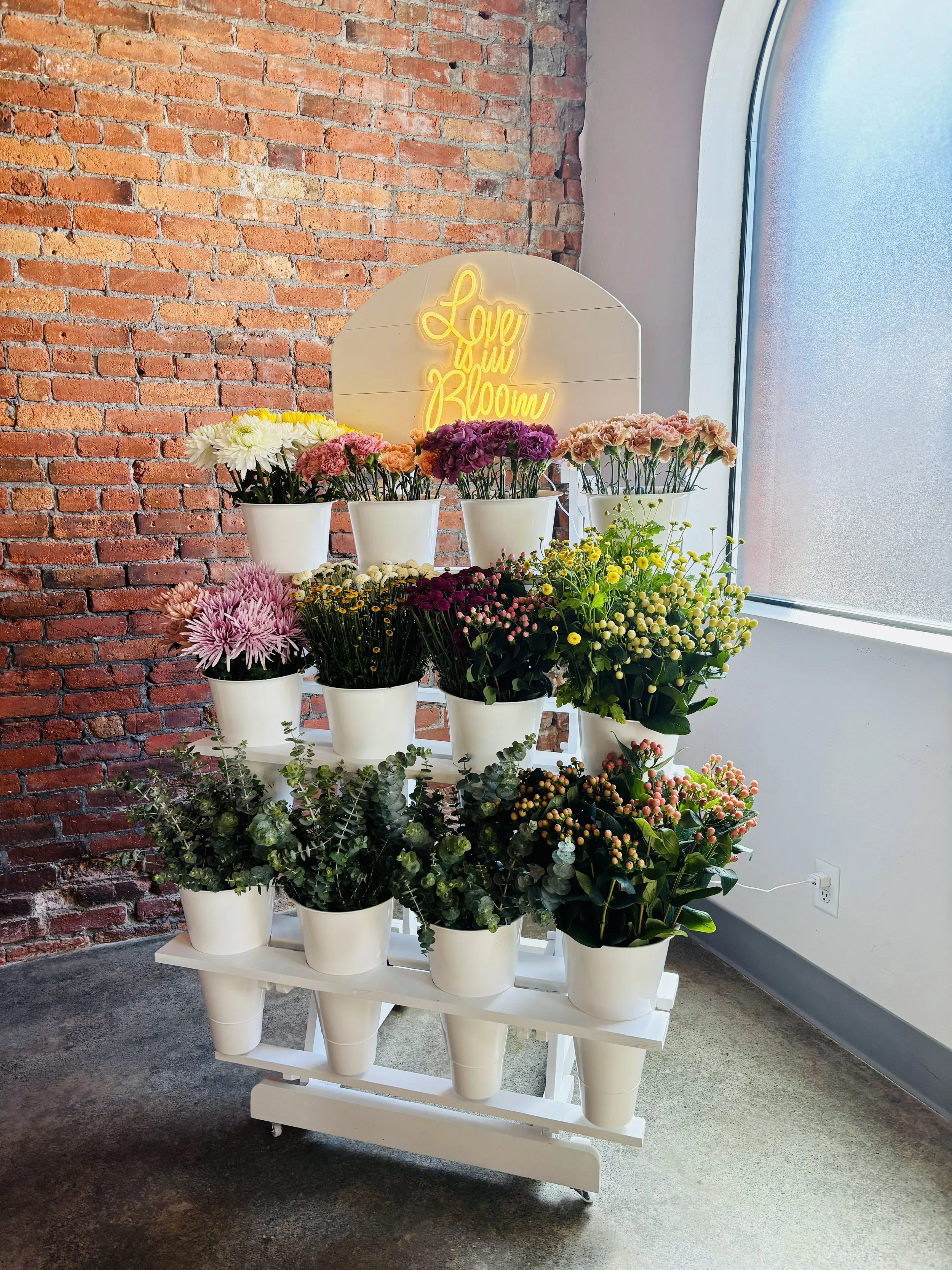 Includes fresh flowers & wraps for guests to build their own bouquet